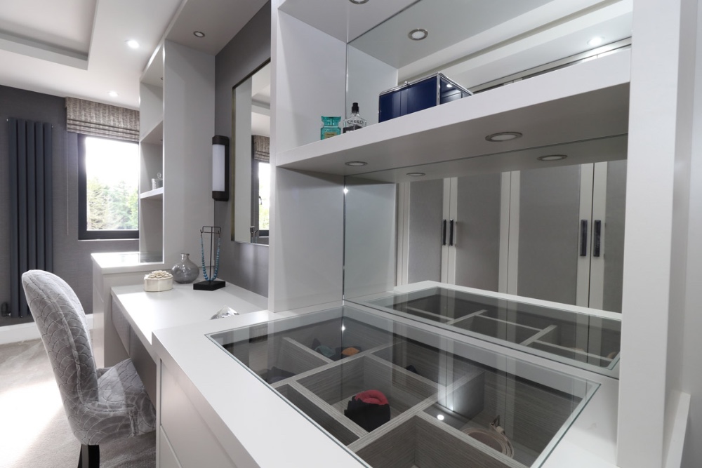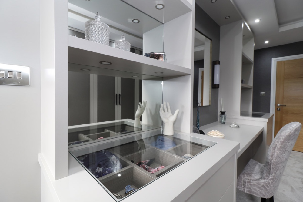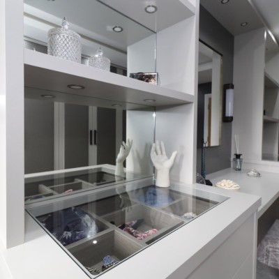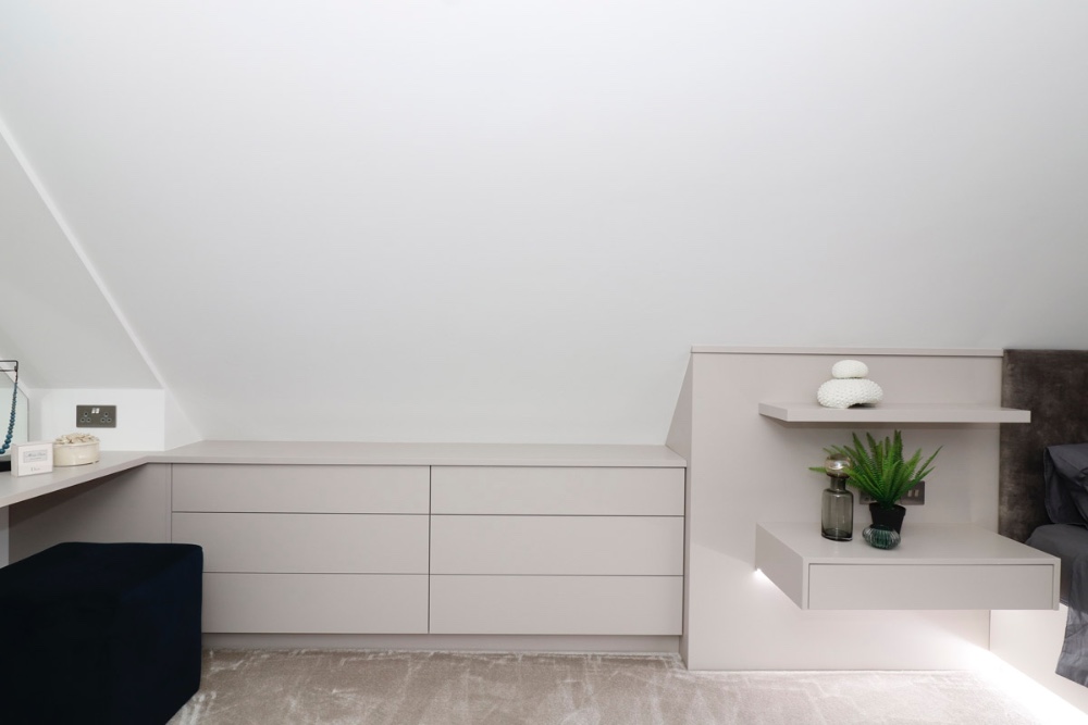 We design, manufacture and install fitted wardrobes, bedside units, headboards, dressing tables, drawers, and bedside tables. With a vast array of storage options, such as jewellery trays, accessory trays, shoe racks, and made-to-measure hanging space, draws and shelving.